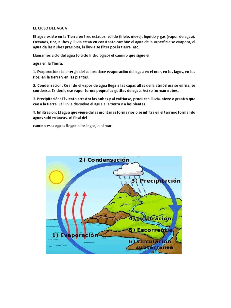 3.1 explica la evaporación del agua del mar. En ellas el agua pasa por sus diferentes estados físicos (líquido, gaseoso y sólido); El ciclo del agua es una descripción detallada de la mecánica del flujo de este vital líquido entre la tierra, el mar y la atmósfera. El ciclo del agua consiste en el proceso que sufre el agua, desde evaporación hasta precipitación. Comparte este material que ha sido realizado por el maestro mauricio vargas vargas y ha sido compartido en facebook: